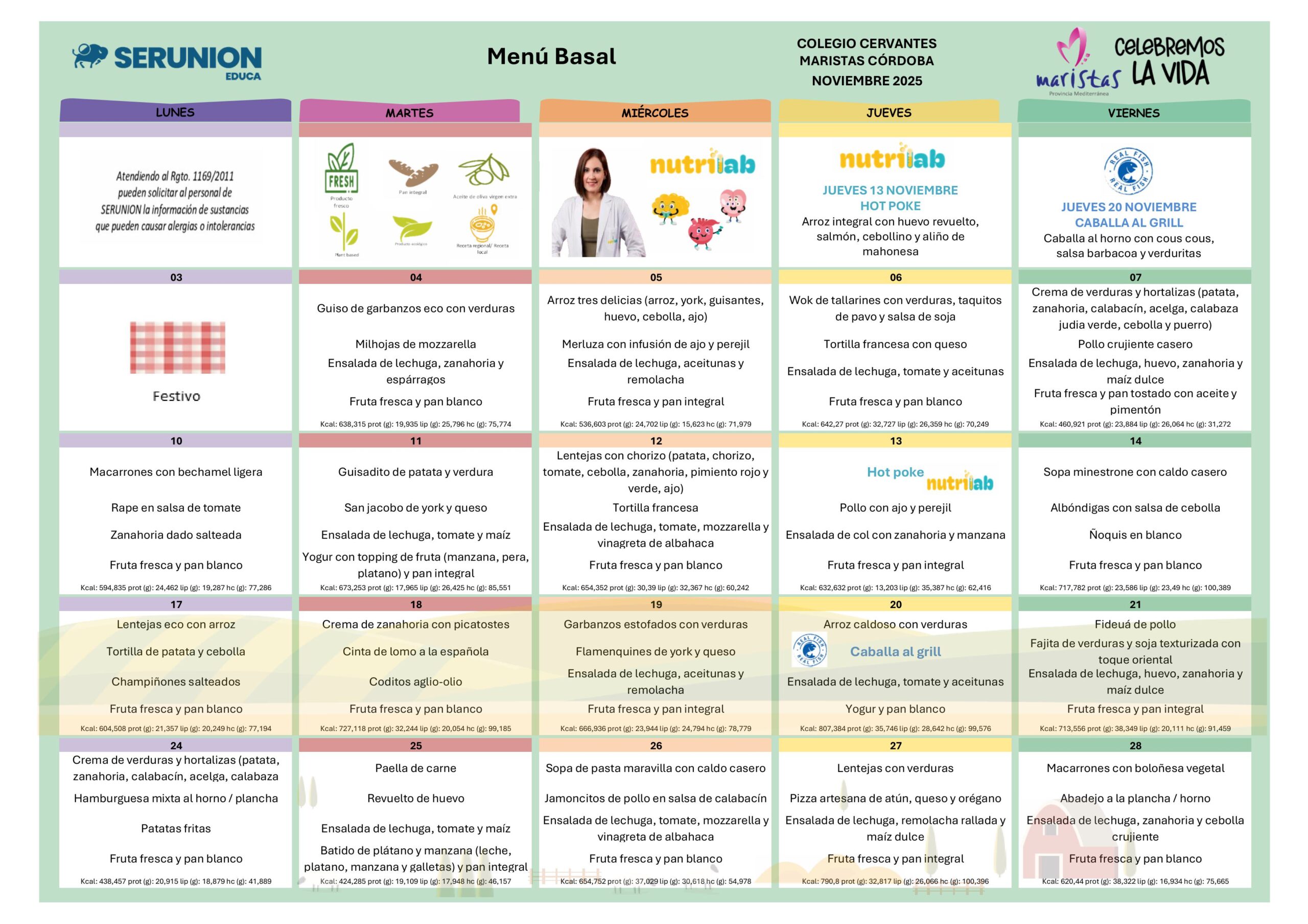 En ella encontramos toda la información de los menús, la información nutricional, alérgenos y e incluso recomendaciones para cenas. Así como las actividades y proyectos educativos que se llevan a cabo en el centro.