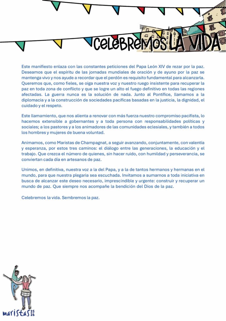 Presentamos el Manifiesto de la Comunidad Marista por la Paz.