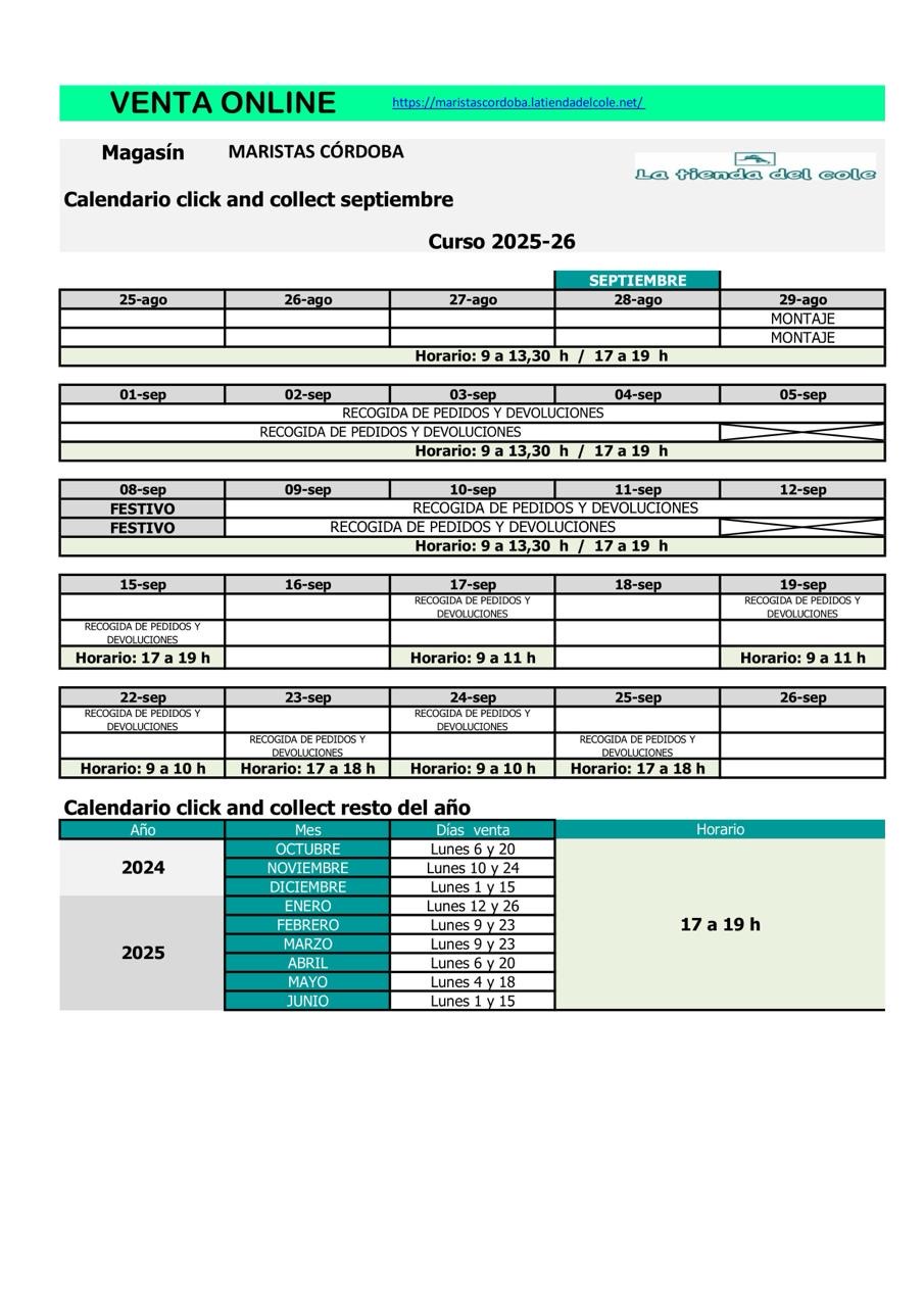 Les rogamos que ya no acudan al colegio para comprar el uniforme, ya que solo se podrá hacer a través de la página web de la tienda del cole: